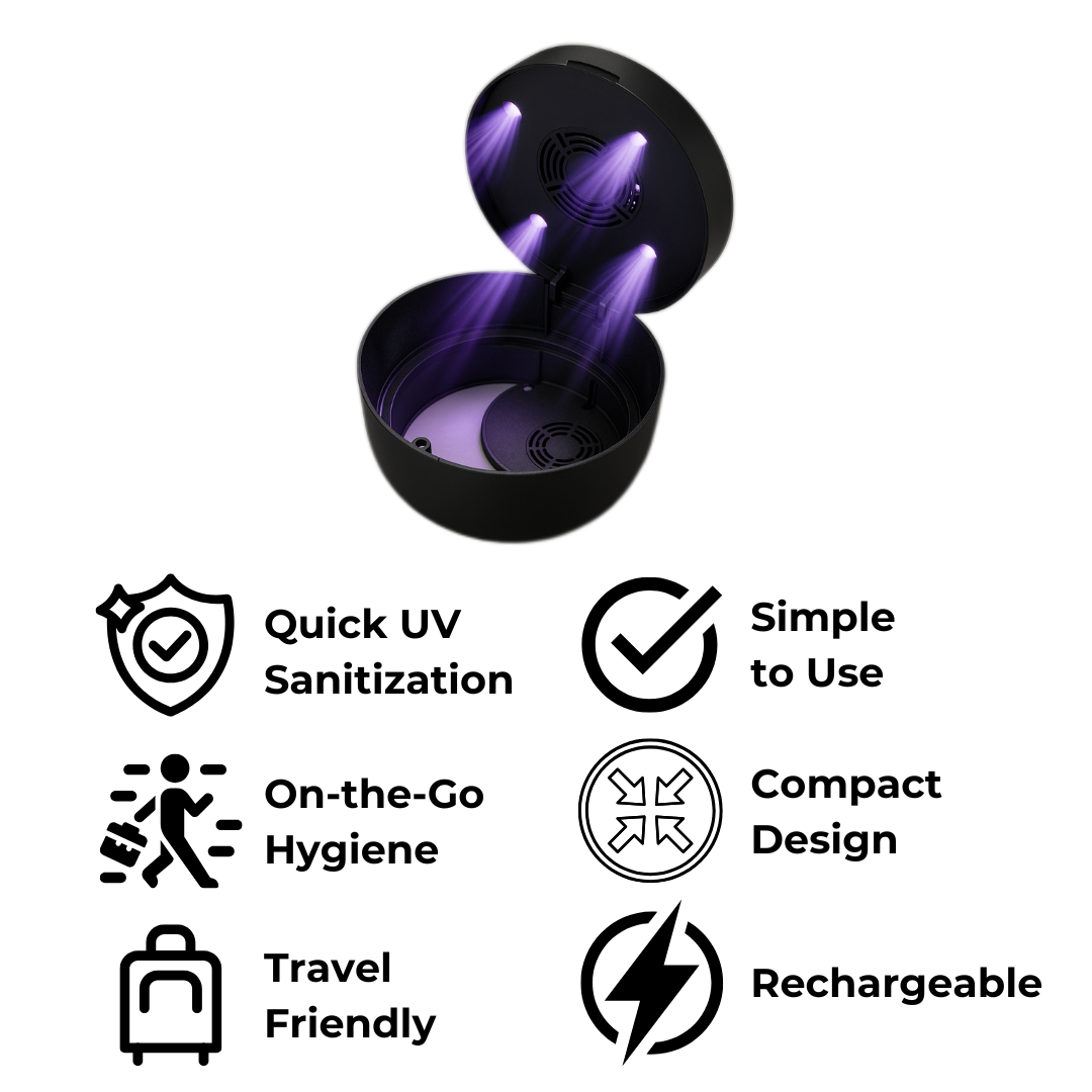 Our Portable UV Denture Sanitizing Case is designed to keep your dentures fresh, sanitized, and protected wherever life takes you.